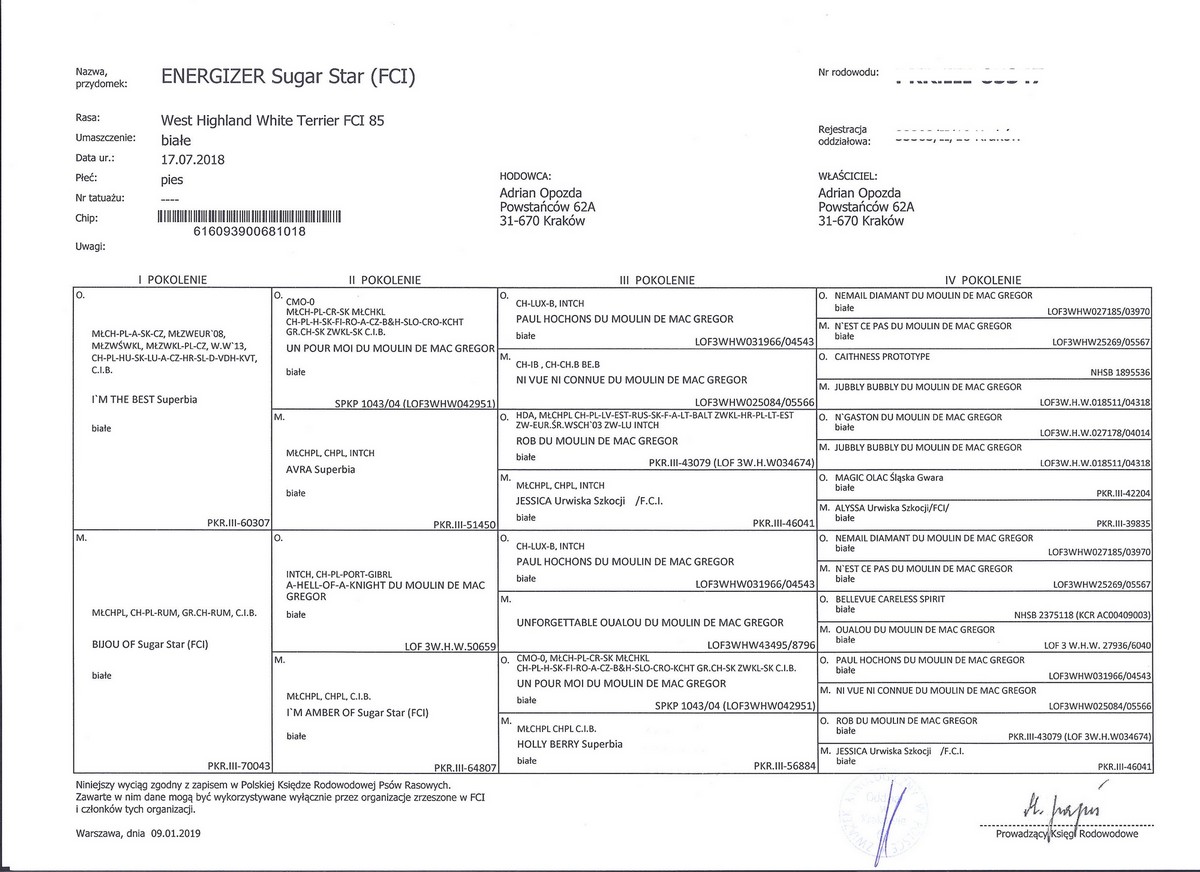Osiągnięcia: 3x Best Junior (Najlepszy Junior w Rasie) 3x Zwycięstwo Młodzieży 1x BOB (Zwycięzca Rasy) 1x Młodzieżowy Zwycięzca Polski Wrocław 2019 Nominacja na Crufts 2020