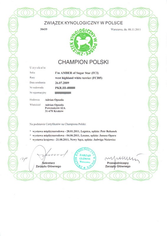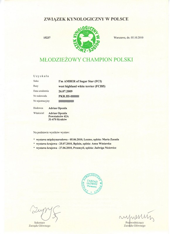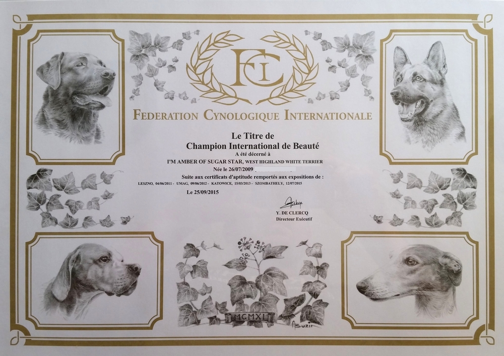 Osiągnięcia: 1x Best Junior (Najlepszy Junior w Rasie) 3x Zwycięstwo Młodzieży 4x CWC (1. lokata, wniosek o Championat Polski) 2x CAC (wniosek o Championat Węgier) 1x res. CAC (rezerwowy wniosek o Championat Węgier) 2x res. CAC (rezerwowy wniosek o championat Chorwacji) 2x res. CAC (rezerwowy wniosek na Championat Rumunii) 1x res. CAC (rezerwowy wniosek na Championat Słowacji) 2x CACIB (wniosek o Międzynarodowego Championa Piękności) 2x res. CACIB (rezerwowy wniosek o Międzynarodowego Championa Piękności) 1x Zwycięzca (Najlepsza Suka w Rasie) 2x BOS (Zwycięzca Płci Przeciwnej) 1x BOB (Zwycięstwo Rasy)